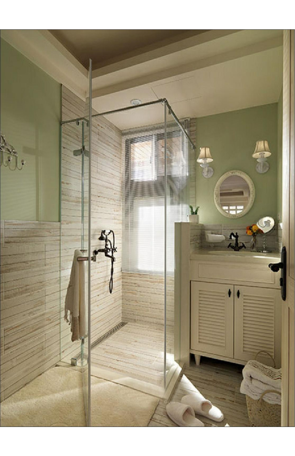 衛生間同樣為暖色系,淋浴房地漏的設計使得在使用時腳下不會積水。